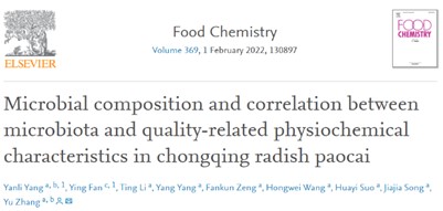 索化夷教授和张玉副教授课题组在泡菜品质控制方面取得了系列研究进展,相关成果发表在Food Chemistry、Food Science & Nutrition等国际期刊。