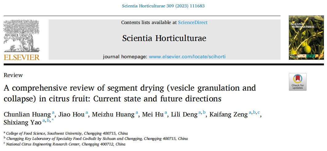 Huang, C., Hou, J., Huang, M., Hu, M., Deng, L., Zeng, K., Yao, S. 2023. A comprehensive review of segment drying (vesicle granulation and collapse) in citrus fruit: Current state and future directions. Scientia Horticulturae, 309, 111683.