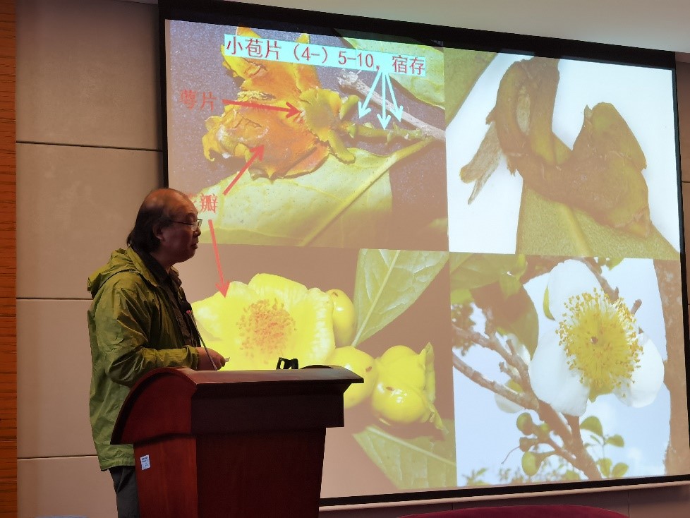 会议伊始,杨世雄研究员从茶树的拉丁学名进行阐述,拉丁学名的种加词包括姓名、地名等,并讲述了茶组的建立,对茶组和山茶组两个组之间的差异进行了探讨,并以植物标本和文献为依据,指出某些书籍上有关茶树分类等的错误,最后杨世雄研究员对现代茶组分类系统进行了解释,分别从张宏达系统和闵天禄系统做比较。到场师生积极与杨世雄研究员展开了细致的讨论,现场学术氛围浓厚。