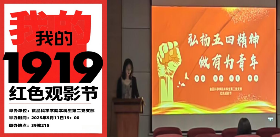 本科生第二党支部在39教215开展“红色观影节——五四精神主题教育”活动,集中观看电影《我的1919》。本科生第二党支部全体党员、入党积极分子及部分团员参与活动,本次活动由耿李加涛同志主持。