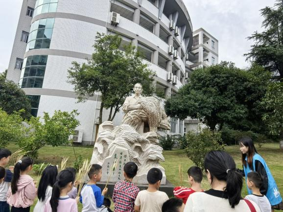 随后,全体成员前往袁隆平院士雕像前举行缅怀仪式,支部党员杨金秋同志向大家讲解袁隆平的科研事迹和奉献精神,勉励在场人员以实际行动养成节约粮食的好习惯,传承 “禾下乘凉梦” 的精神内核。