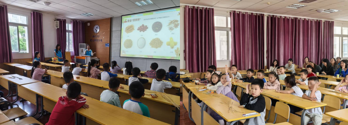 支部党员黄奕同志简要介绍了世界粮食日的设立背景与重要意义,通过图文并茂的讲解,向小朋友们介绍了各类粮食作物的生长过程、营养价值,以及当前全球粮食浪费的严峻现状,强调节约粮食的必要性。在互动环节,“五谷辨辨辨”“食品科学知多少”、“诗词中的稻香”等趣味游戏充分调动小朋友的参与热情,现场气氛热闹非凡。全体成员庄严宣誓,承诺从自身做起,珍惜每一粒粮食,践行光盘行动。