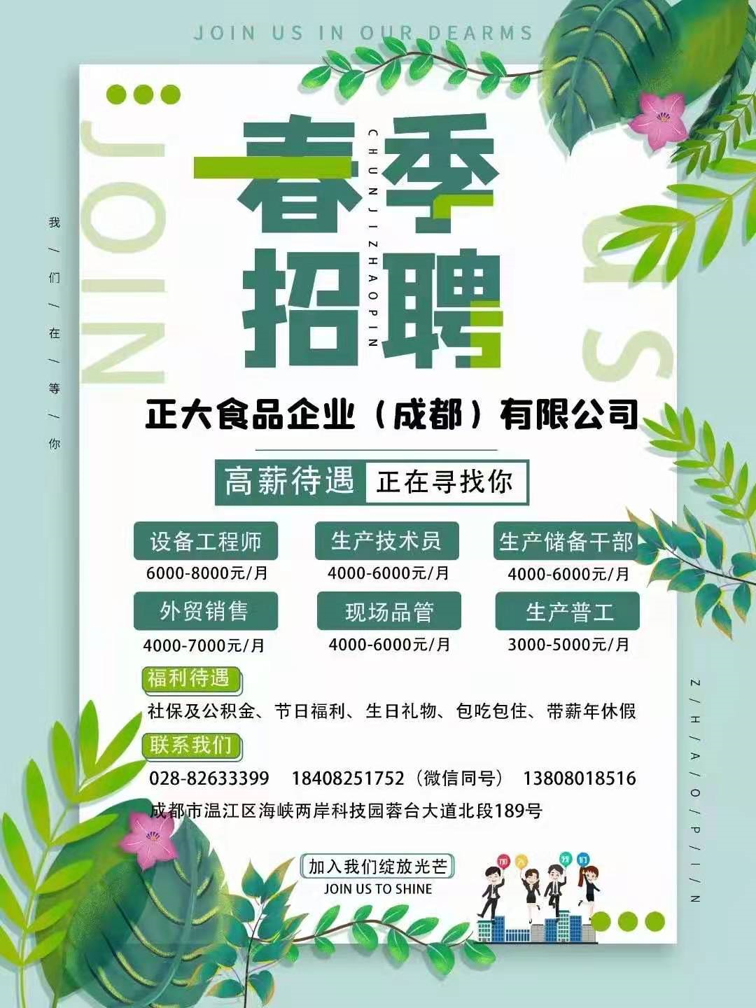 正大食品企业(成都)有限公司招聘