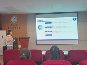 邓丽莉向同学们回答了“读研值不值得”的问题,她表示读研能够构造更高层次的交际圈,增加将来就业的竞争力,为未来的发展铺路。同时,邓老师鼓励同学们增强信心,以积极的心态迎接考研挑战。朱瀚昆老师则结合自身考研经历,从准确分析自身优劣势,积极强化自信心,科学调整心态等方面为同学们进行指导。