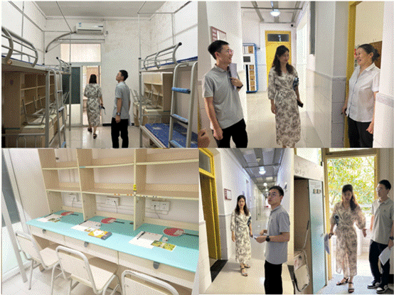 党委副书记刘秋艳和2023级本科生辅导员方令携学生骨干前往新生宿舍进行安全排查,并为宿舍发放小礼品,让新生们感受到了学院的关怀与温暖。