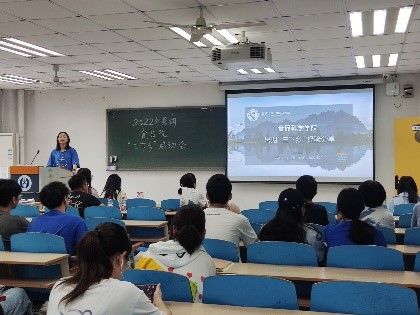 优秀小分队代表刘思童向同学们展示了去年她所在小分队的实践成果,并从如何开展此项活动、如何撰写新闻稿、如何进行活动宣传这三方面给了同学们一剂良方。优秀小分队队长张浩天向同学们展示了他们队伍在活动过程中出现的问题,如语言不通、受疫情防控导致的行程改动等,然后讲述了他们解决这类问题的方法,并就组队这一方面向同学们给出了一些建议,包括如何选择队员、如何进行队内分工等。