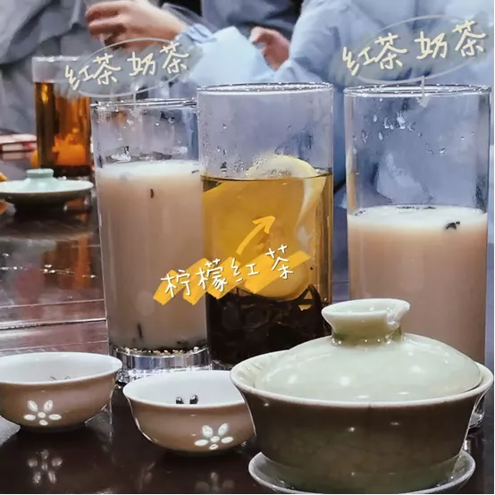 本次活动共准备了11款调配茶的配方,其中在品鉴交流环节最受同学们欢迎的有红茶奶茶、柠檬蜂蜜茶、鲜果茶和玫瑰花茶。临近活动尾声,同学们写下对这次活动的感悟并合影留恋。