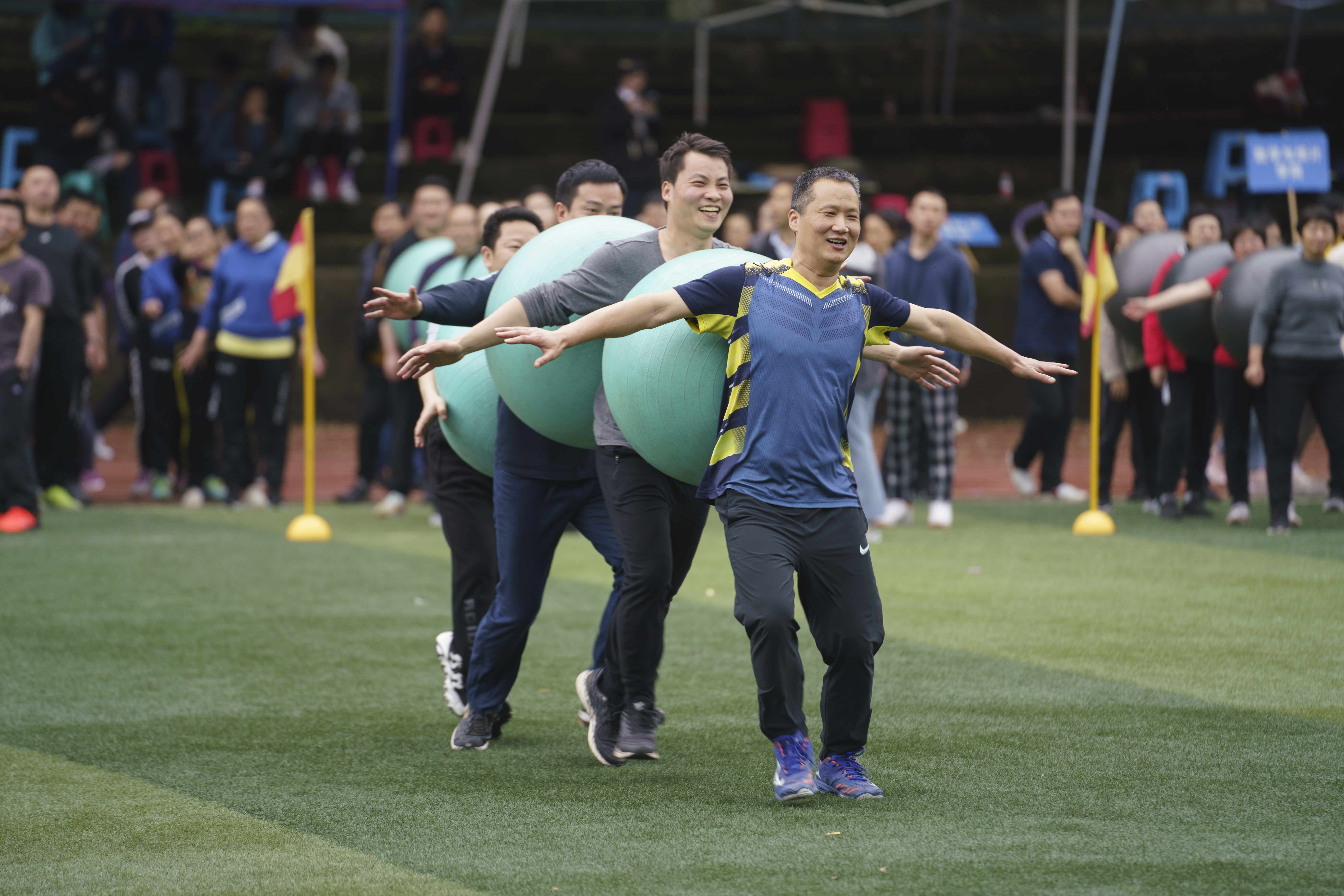 教职工也积极参与到比赛中,在“螃蟹跑”、“风火轮”、“毛毛虫”等趣味运动项目中配合默契、团结友爱,并取得了不错的成绩。