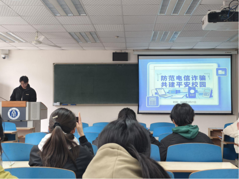 2024级本科生于2025年3月21日组织全体学生开展“筑牢反诈防线,守护财产安全”的主题班会,通过班主任讲案例、反诈知识宣讲、反诈宣誓、签署反诈安全承诺书等环节,为学生敲响了反诈警钟。