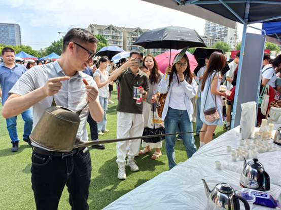 在“非遗项目”体验区准备了糖人糖画、棉花糖、宋代点茶、石磨豆花、冰糖葫芦等经典非遗项目以“可参与、可感知、可分享”的形式,让传统技艺从记忆走进现实,其中宋代点茶体验区,茶香四溢,成人影片