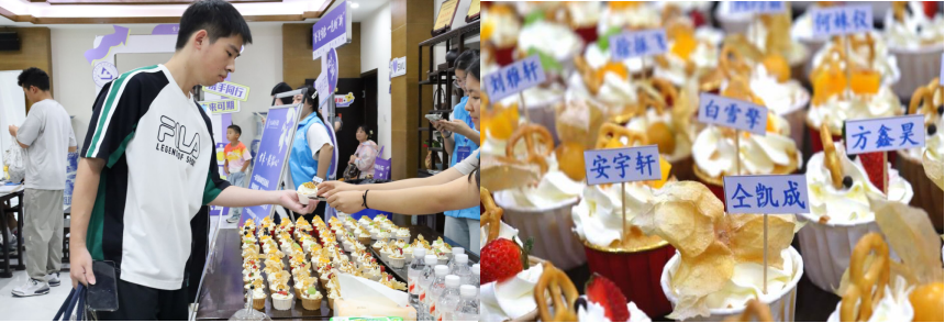 学院内,“欢迎新同学”“我爱食品院”等展板条幅,“不听、不信、不转账”“谨防电信诈骗”等方格纸构成的反诈走廊,带名字的小蛋糕、现泡的老鹰茶、丰富多彩的打卡点、带学院特色的大礼包,营造出了暖心的迎新氛围。