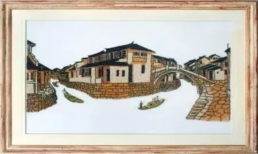 下一站来到粮食画非遗工坊,探访了粮食画民俗展厅,学习到粮食画讲究“粒选精、意趣真”,让实践团成员从历史渊源、艺术特色、非遗农耕文化发展等多个方面感知北碚文化。