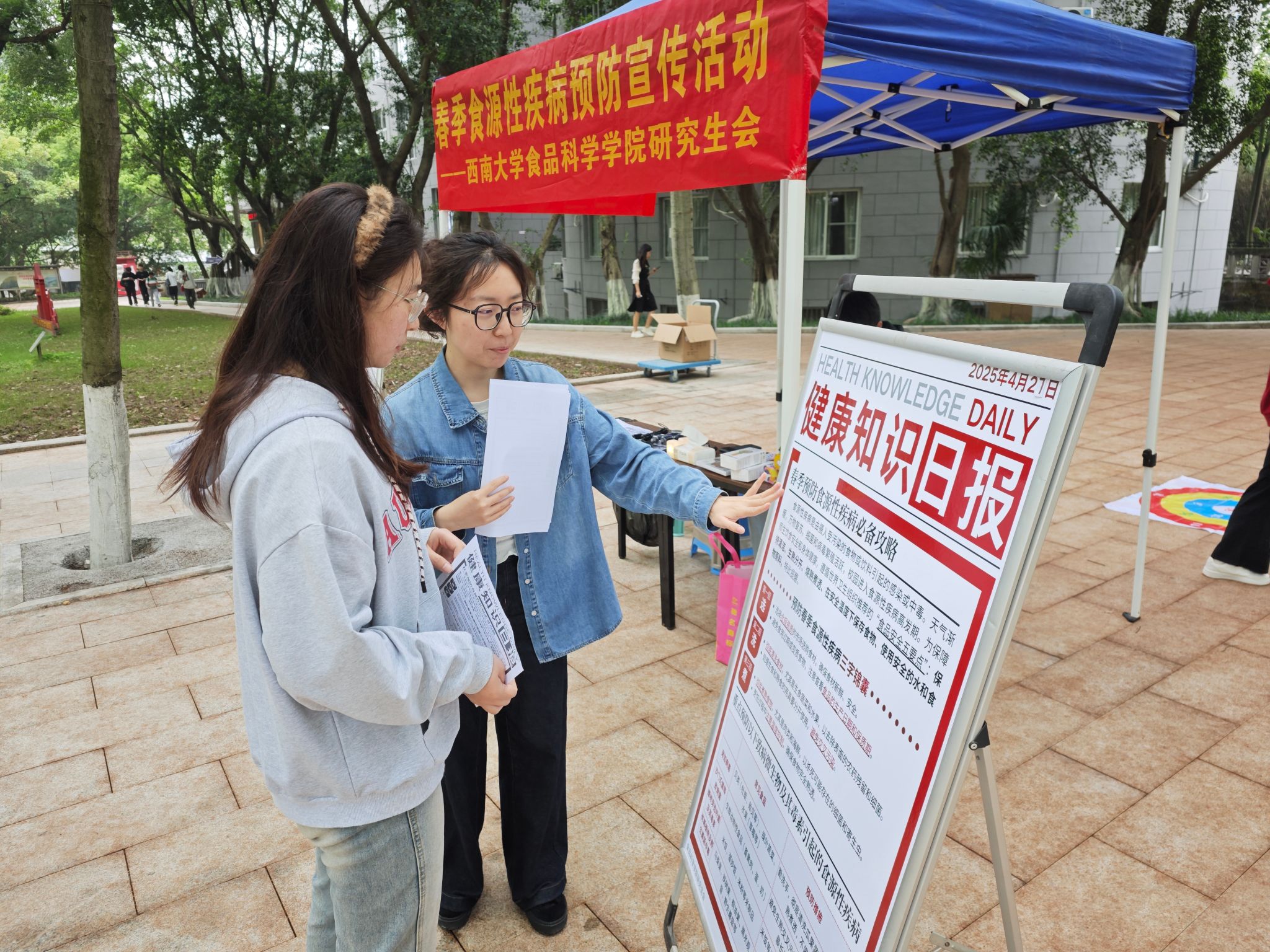 研究生会在南区樟树林开展了主题为“春安‘食’刻”的春季食源性疾病预防宣传活动。