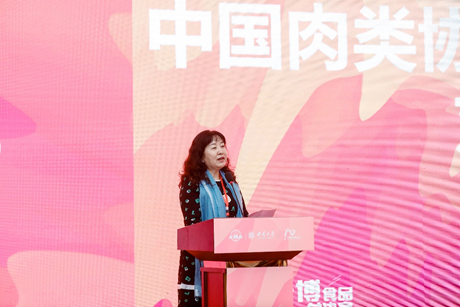 中国肉类协会配料分会秘书长刘莎女士致开幕词