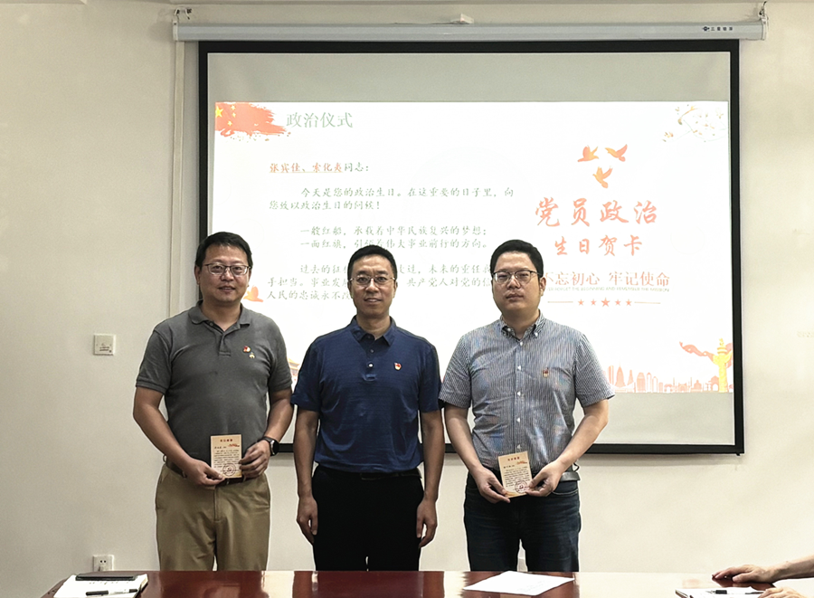 会上,韩旭东为过政治生日的党员赠送了政治生日贺卡。