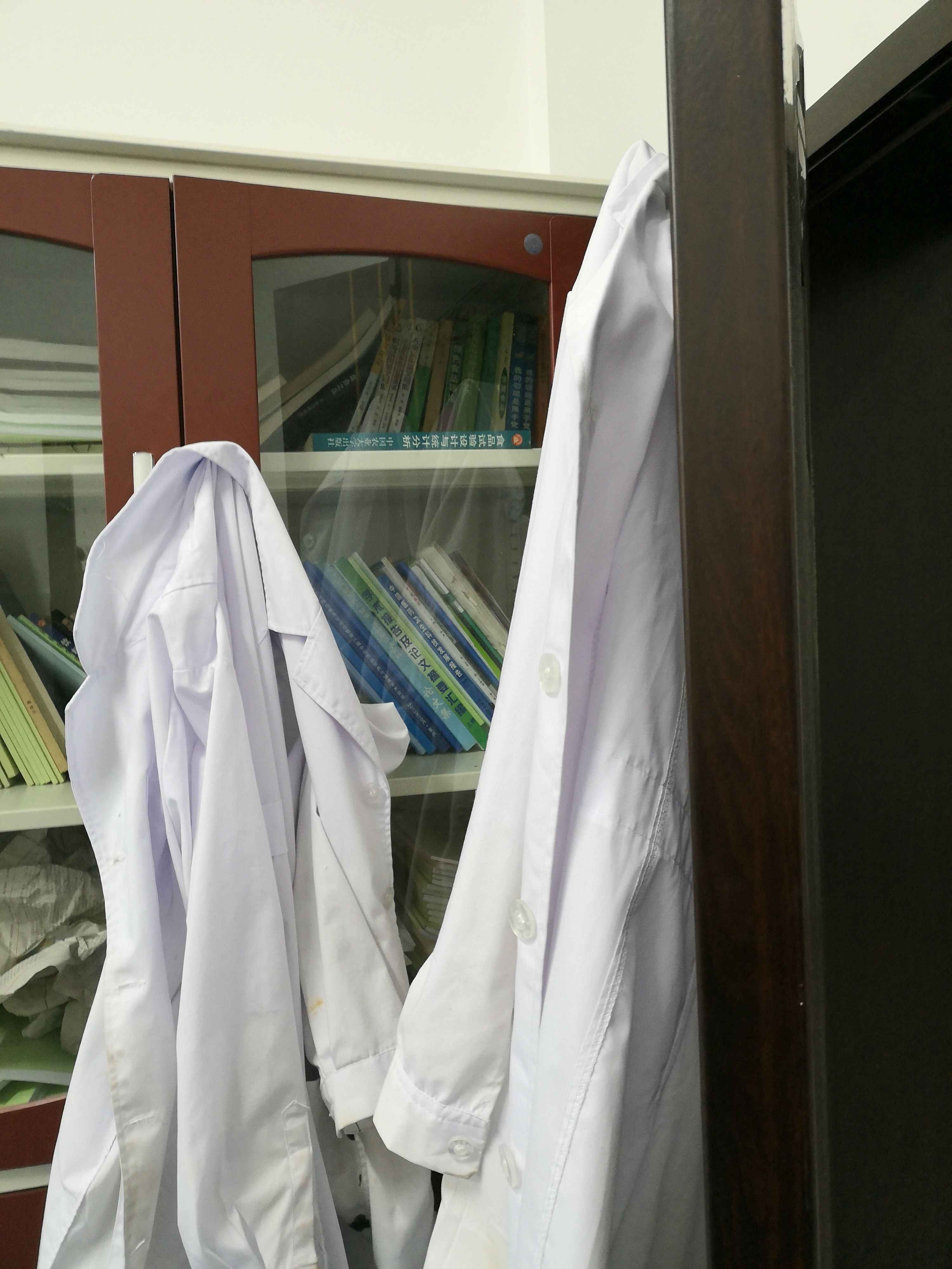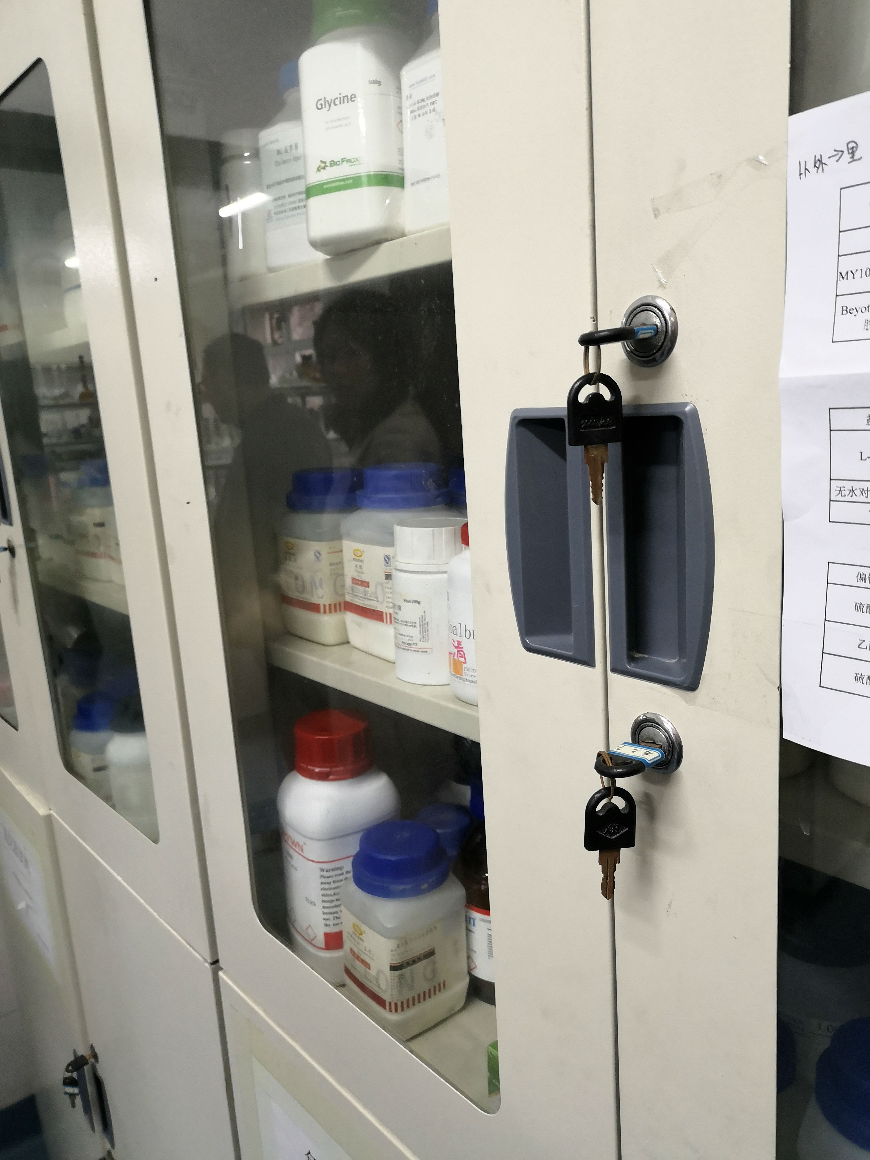 实验室门上观察窗贴纸,或被实验服遮挡。